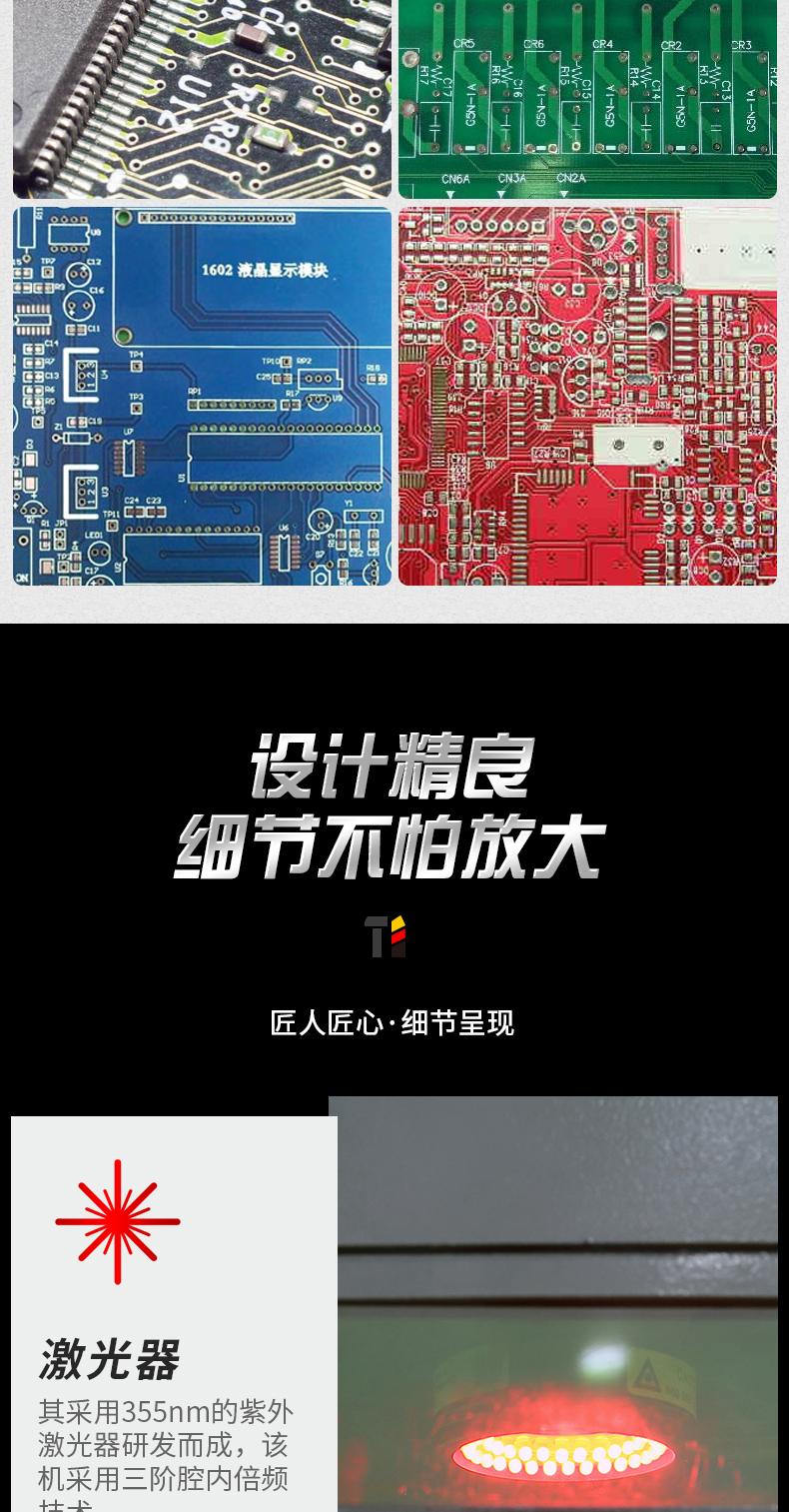 5.光束質(zhì)量好,聚焦光斑小,可實現(xiàn)超精細打標;