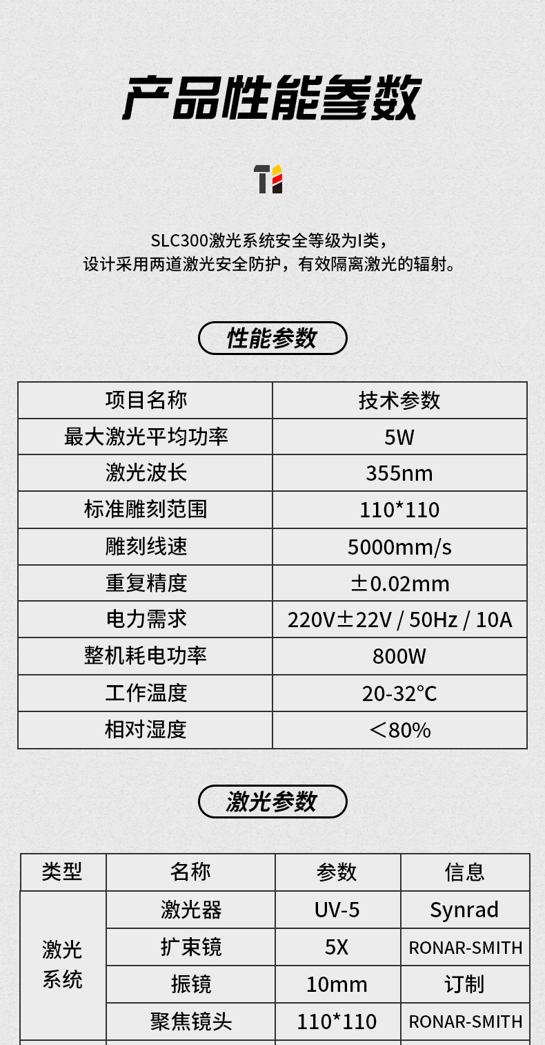 SLC300激光系統(tǒng)安全等級為I類,設計采用兩道激光安全防護,有效隔離激光的輻射。在激光加工過程中無需在進行特殊的防護措施。