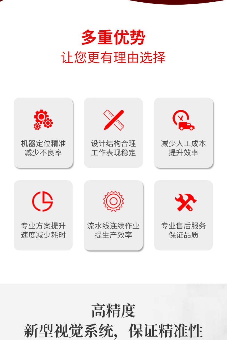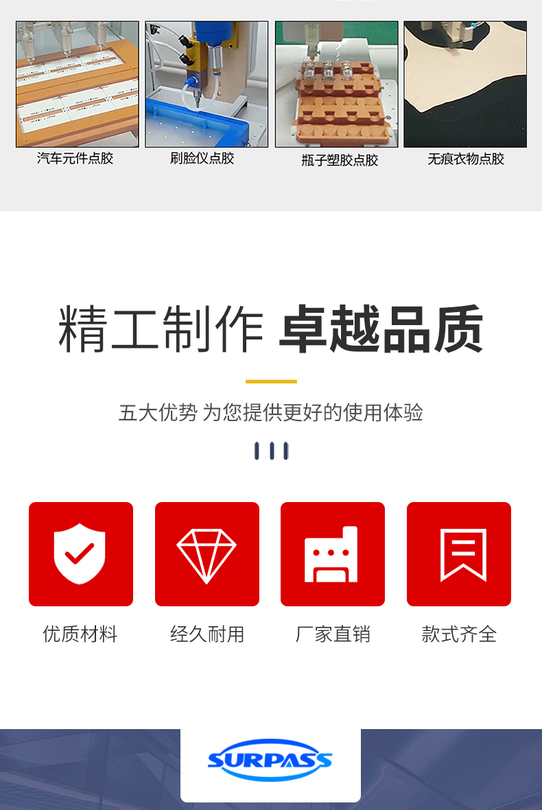 3.獨創(chuàng)的新型視覺技術,采用了新型的視覺系統(tǒng)技術,保證點膠過程的精準性。