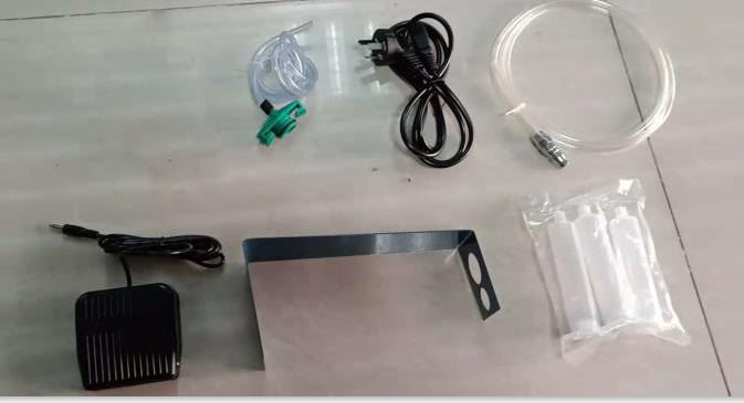 踩一次下腳踏開關液料從針尖孔滴出,松開腳踏開關停止出膠,出膠量及間隔時間完全人工控制。