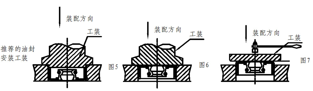 1、油封的安裝可以與殼體孔徑前端平齊,也可以靠近殼體孔徑低斷面(如圖5、6)